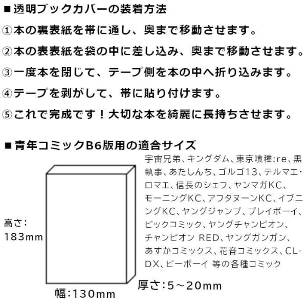 透明ブックカバー 青年コミック用 100枚【青年 B6 BL TL 単行本 コンビニコミック】