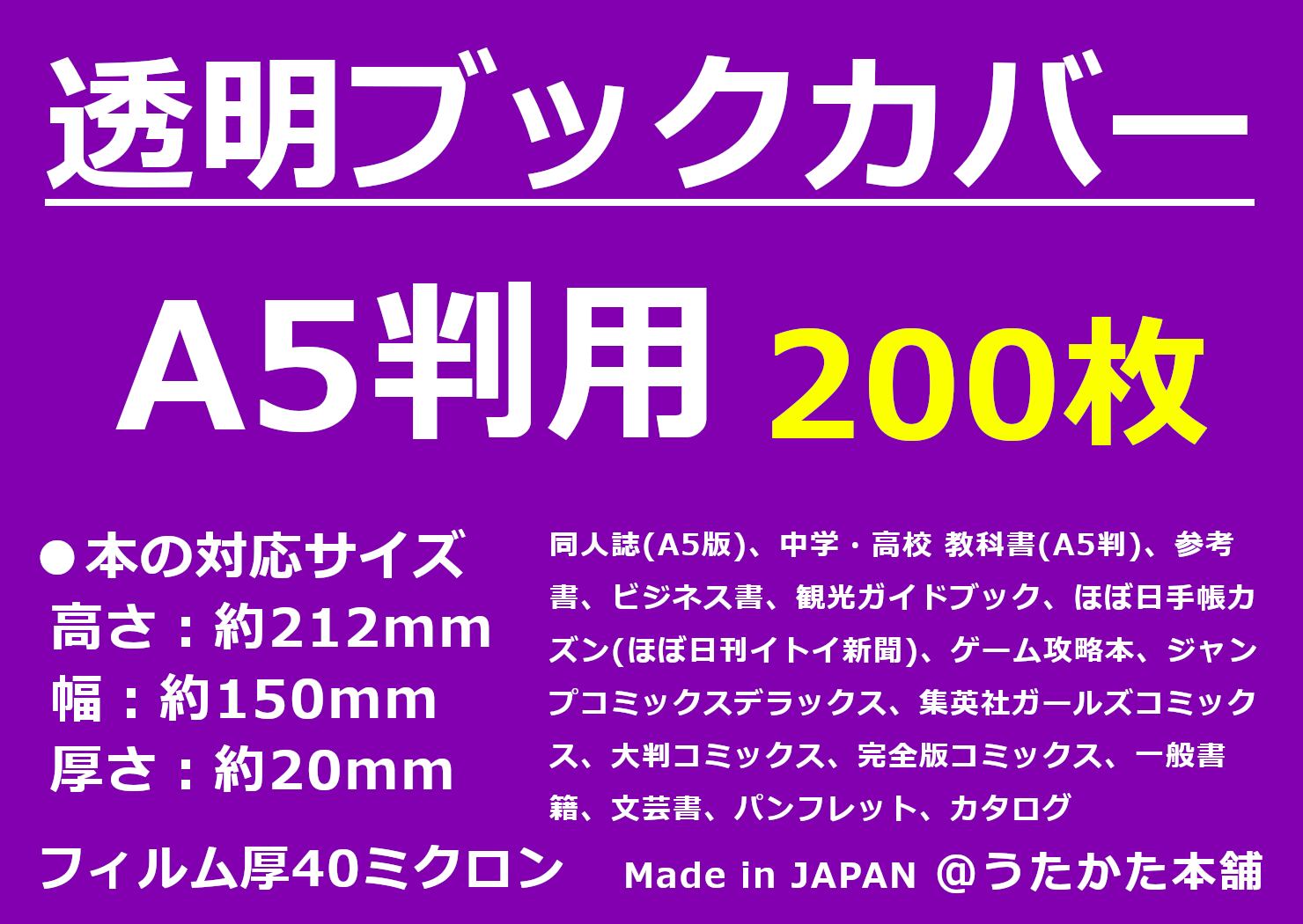 透明ブックカバー A5判用 200枚【A5判 同人誌 中学高校教科書 観光ガイドブック 完全版コミックス】